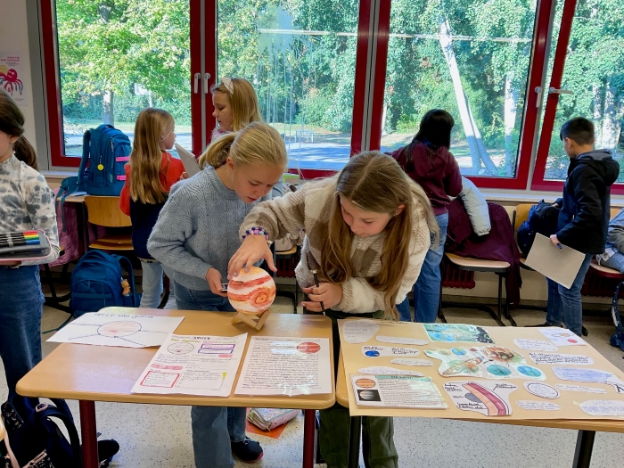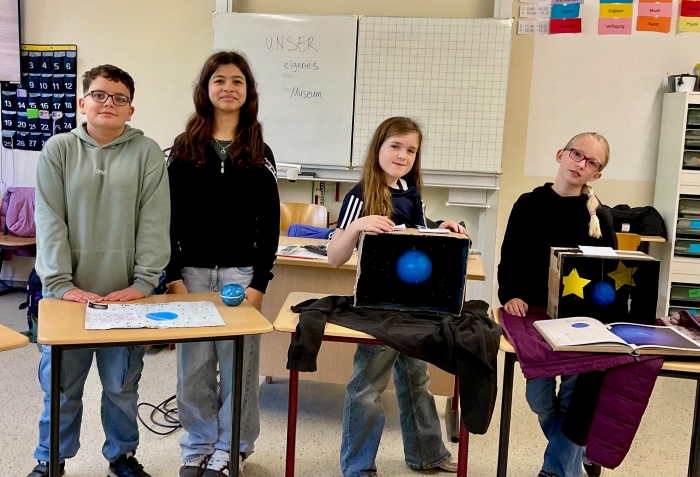 Alle zusammen haben wir ein wunderschönes Museum gestaltet. Es gab verschiedene Modelle, Plakate oder Bücher. Jede/r hatte gute Ideen. Es gab z.B. schwebende Schlümpfe, aufklappbare Bilder, tolle Plakate und noch vieles mehr. Wir haben uns voneinander inspirieren lassen und uns gegenseitig geholfen.