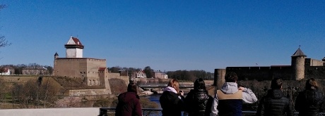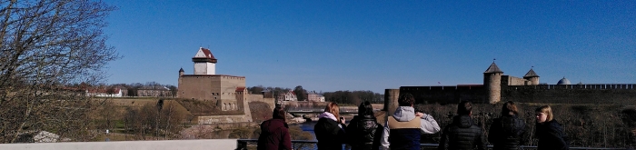 Zu Beginn gab es nicht nur ein Wiedersehen mit den Gästen, die Anfang November in Brake waren, sondern auch eine deutsche Flagge an der Schule. Die europäische Zugehörigkeit ist hier sehr wichtig und wird immer wieder betont, was bei der Nähe zu Russland auch verständlich ist. Heute konnten wir das in der Grenzstadt Narva gut nachvollziehen (die linke Festung gehört zu Estland/zur EU, die rechte zu Russland).