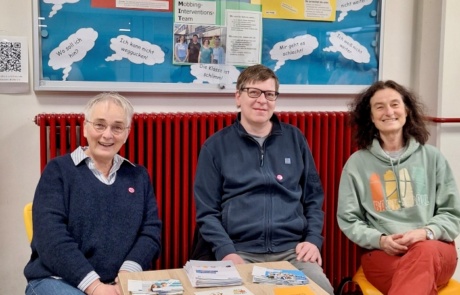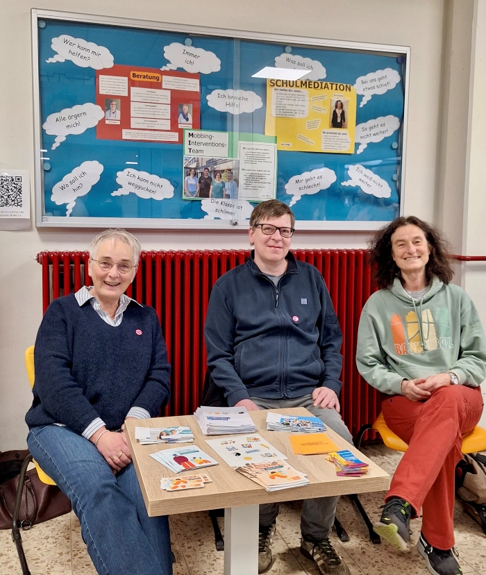 Am 11. März, dem Gedenktag Opfer terroristischer Gewalt , stellten sich auch die Beratungsinstanzen unserer Schule in beiden großen Pausen erneut vor. Das Mobbing-Interventions-Team verteilte ebenfalls farbenfrohe, pinke Ansteckknöpfe, die als ein sichtbares Zeichen gegen jede Form des Mobbing stehen.